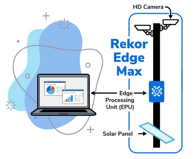 How does the system work with live video of traffic? Each Rekor Edge Max system contains an embedded Edge Processing Unit (EPU) that processes multiple streams of high-resolution video at once. Installed directly on the roadside, it delivers low-power computing in a compact unit, allowing us to accurately analyze full-frame video without performing expensive processing in the cloud. What happens after the video is processed? After processing the raw video using our EPU, small bits of metadata containing actionable information are sent to the cloud via a cellular connection. The data can then be accessed through REST APIs, exported in a variety of TMG-friendly formats, or viewed with Rekor Discover’s web-based dashboards.