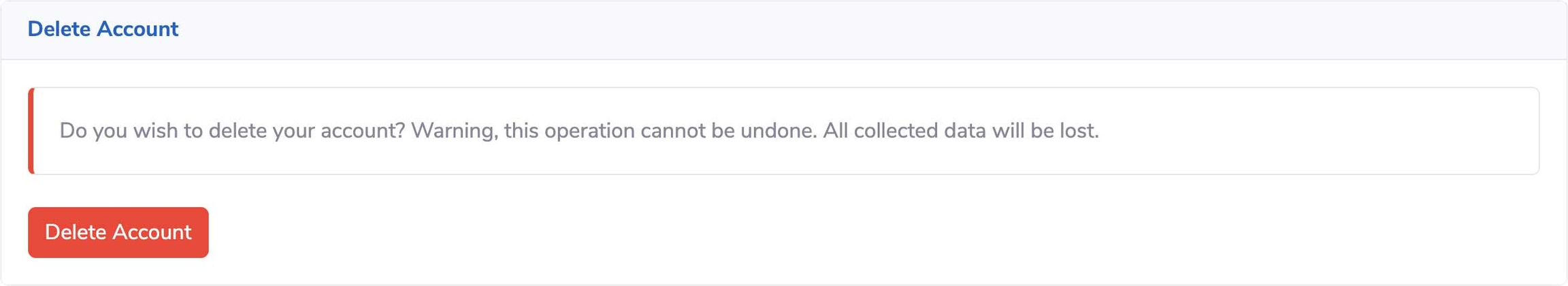 If you choose to delete your account, all the collected data will be lost. Once an account has been deleted it cannot be undone.
