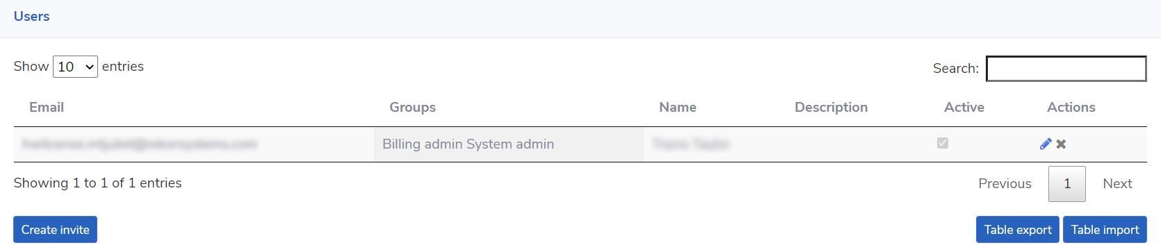 A table list of all users (active or inactive) can be exported to or imported from a .csv file.