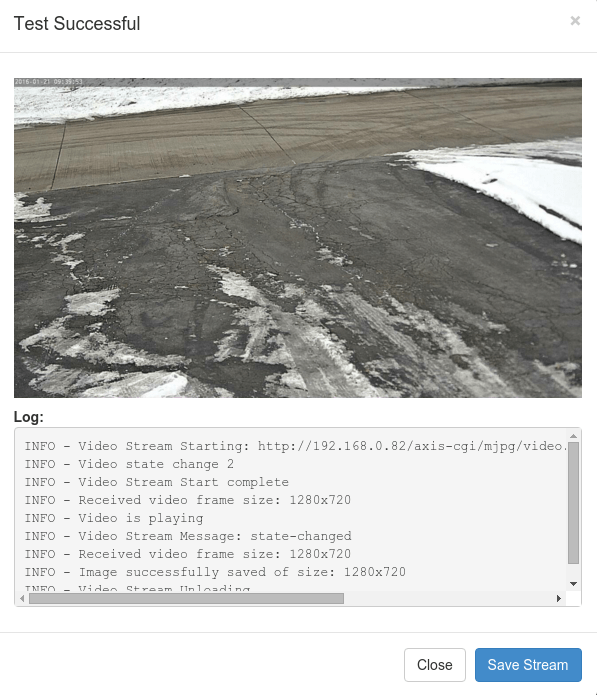 Click Test. After a few seconds, you will see a window indicating whether or not the connection was successful. If it was successful, click Save Camera. If not, try another option (such as H264 Alt1 or MJPEG) and click Test again until you succeed.