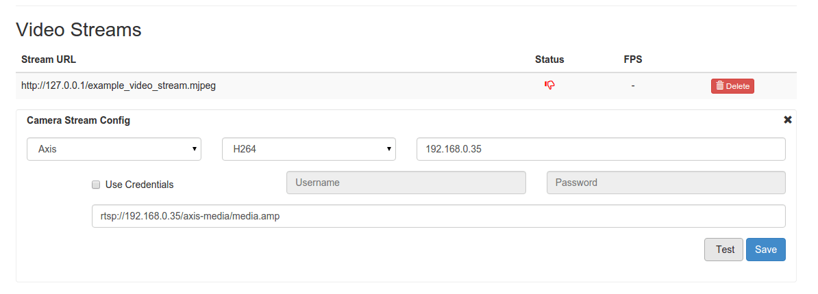 Add a new camera stream for the Agent to manage