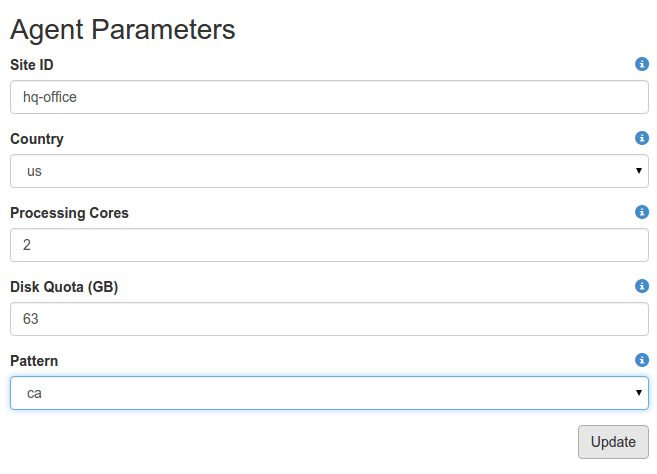 Agent names should be unique and can be changed by clicking on them. Choose a sensible name related to the Agent’s location (e.g., headquarters, dallas-branch, or warehouse3). By clicking the Configure button next to an Agent, you can: